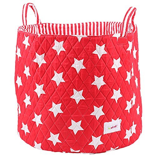 - Minene Large Storage Basket with Red Stars - star storage baskets, round storage baskets, large fabric storage basket - great for toy storage, kids storage and as a laundry hamper