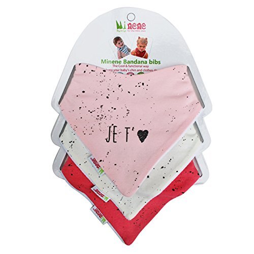 - Minene Baby and Toddler Bandana Drool Bibs Super Absorbent Set of 3 (Pink, White, Fuchsia)