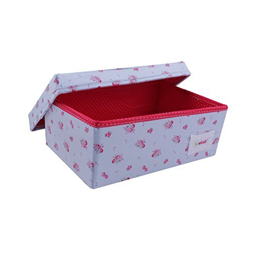 - Minene Small Foldable Fabric Storage Box L32xW21xH12cmLinen Cosmetic Stationery Organiser with Flowers(Blue with Red Flowers)