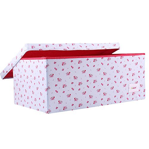 - Minene Large Storage Box with Lid Blue with Red Flowers - star storage box, large fabric storage box - great for toy storage, kids storage