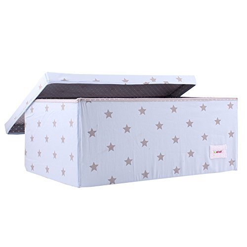 - Minene Large Storage Box with Lid Blue with Grey Star - star storage box, large fabric storage box - great for toy storage, kids storage
