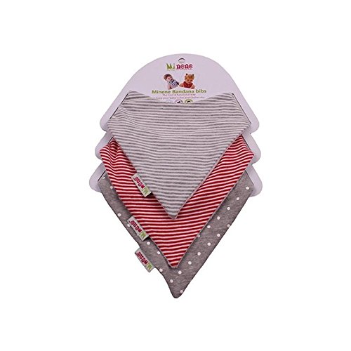 英国のバンダナビブTrio-赤&グレー (Minene) (x 4) - Minene UK Bandana Bib Trio- Red & Grey (Pack of 4)