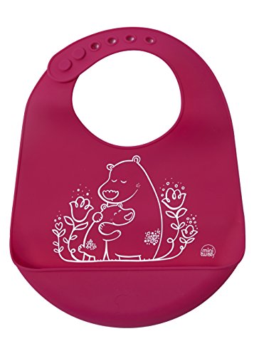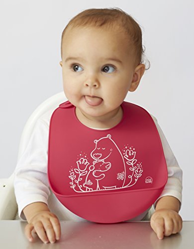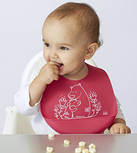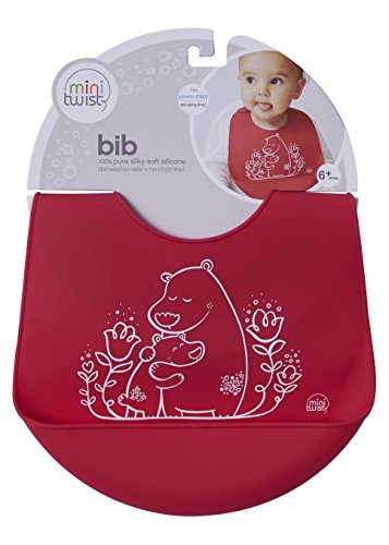 The baby bucket bib is made from FDA-approved, food-grade silicone and has a deep pocket to catch food and drink spills!;Roll up the flexible, memory-free bib for on-the-go dining; rescues clothes from endless spills and stains;Adjustable neck strap fits babies 6 months old and up; silky soft silicone is comfortable on a baby's sensitive skin;Easily cleans after use by wiping down with soap and water; dishwasher safe; made with 100% pure, food-grade silicone;All mini-twist products have a smaller footprint than modern-twist products, for the mini ones in your life