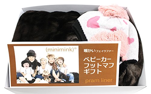 minimink a162ミニミンク高級ファー素材フットマフフットマフチョコとラヴィNYのニット帽子ピンクハートのセレブリティギフト