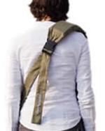 ![]() | 1.肩にパッド、背中にバックルが来るようにスリングを身に着ける |