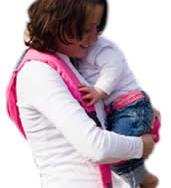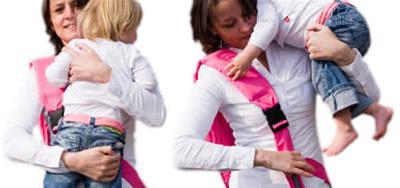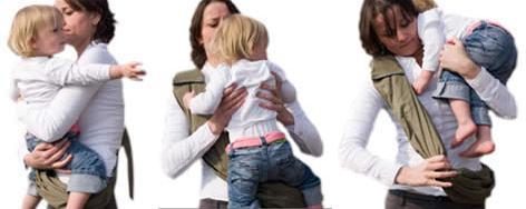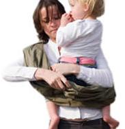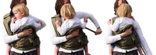 4.しっかりと座ったポジションで適当な長さにストラップを調整すると、お子様の体重は使用者の肩、背中、腰に分散されて快適抱っこに