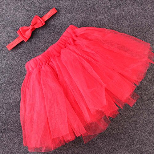 MIOIM チュチュスカート ベビー ヘアバンド付き tutu チュールスカート 赤ちゃん キッズ レインボースカート 記念撮影 小道具 出産お祝い (L/0~2歳/腰囲19cm, レッド)