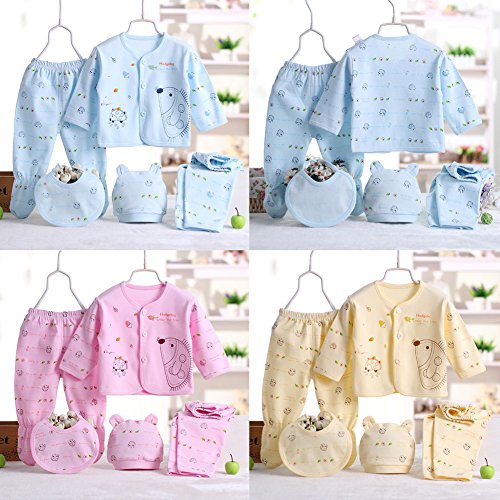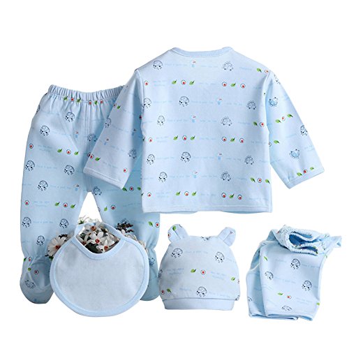 ベビー服 5点入り 女の子 男の子 前開き シャツ 長袖 長ズボン ベビー帽子 よだれ掛け 春 秋 パジャマ 赤ちゃん 新生児 可愛い 星月柄 柔らかい 綿 普段着 記念写真 出産祝い プレゼント 0-3ヶ月