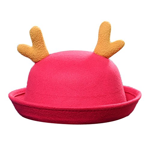 MIOIM 大人 子供 フェルトハット ハロウィン クリスマス 山高帽子 ウール 鹿角 帽子 丸み ラシャ ボーラーハット ダービーハット 通園 通学