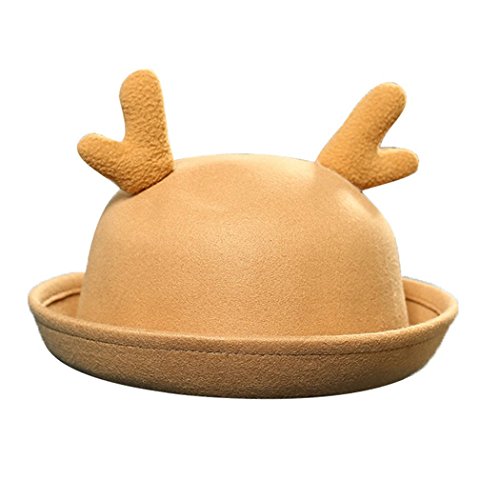 MIOIM 大人 子供 フェルトハット ハロウィン クリスマス 山高帽子 ウール 鹿角 帽子 丸み ラシャ ボーラーハット ダービーハット 通園 通学