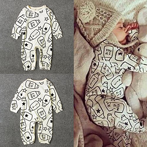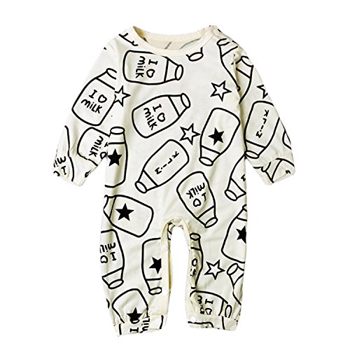 MIOIM ベビー服 かわいい 赤ちゃん ロンパース 連体ズボン 長袖 Tシャツ 連体服 ボディスーツ 長袖長ズボン 乳牛瓶柄 女の子 キッズ 春秋 子供服