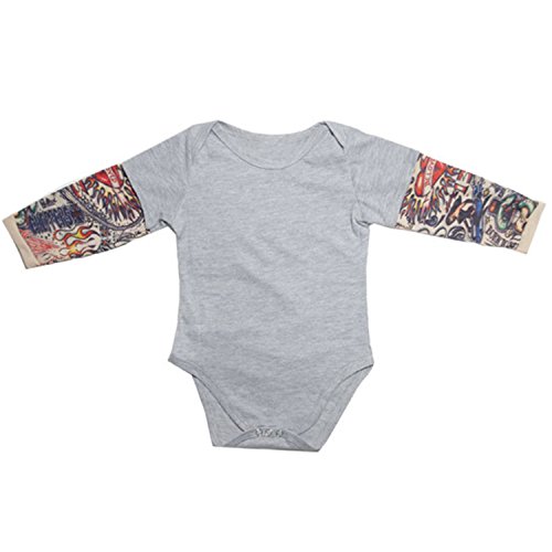 MIOIM ベビー服 キッズ 赤ちゃん ロンパース ボディスーツ 長袖 可愛い 連体服 Tシャツ カジュアル プライーシャツ タトゥー柄 子供服