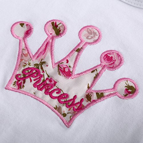 - Tシャツの上に綺麗な王冠を飾り、シンプルでかわいいです。パンツも花と蝶結びがあります。
