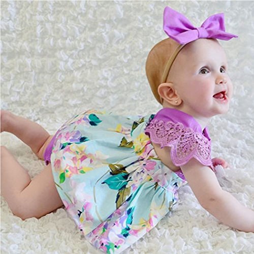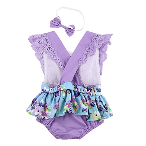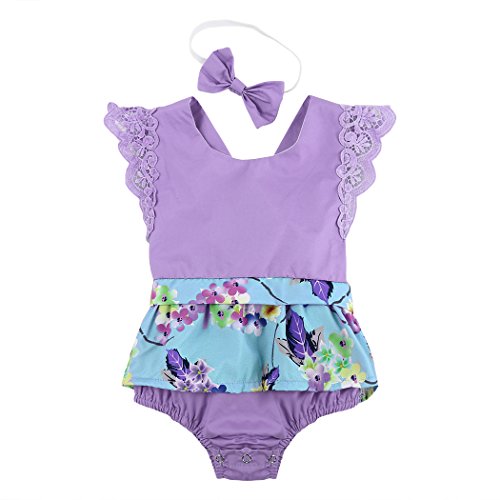 MIOIM 蝶結びヘアバンド付き ベビー ロンパース 赤ちゃん 女の子 かわいい 花柄 プリント 連体服 薄地 ボディスーツ お着替え簡単 カバーオール 新生児 出産祝い 0~2歳