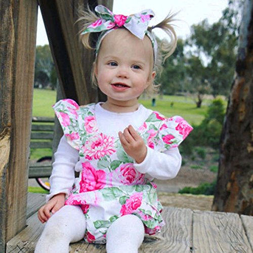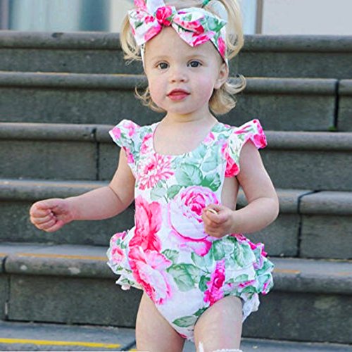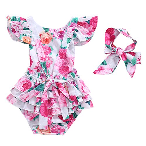 MIOIM ベビーロンパース ヘアバンド付き かわいい 花柄 シャツ キッズ 肌着 ボディスーツ 赤ちゃん 女の子 七五三 出産お祝い 0~2歳