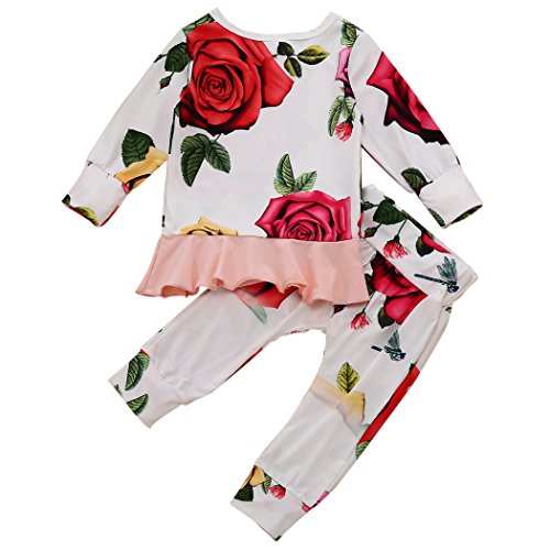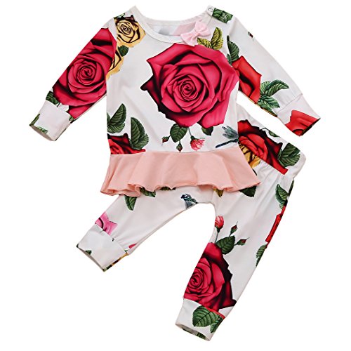 MIOIM 子供服 ベビー服 Tシャツ 長パンツ ローズ プリント 上下セット バラ 長袖 トップス セットアップ カジュアル プライマーシャツ