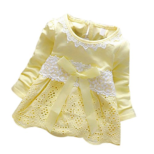 MIOIM 子供ドレス ベビー キッズ 女児 ワンピース キャンディー色 透かし雕り レース柄 パーティードレス 発表会 入園式 七五三 花嫁介添人 長袖 お嬢様 フォーマル リポン飾り 1~3歳