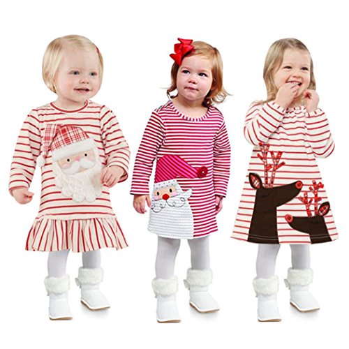 MIOIM ベビー服 女の子 ワンピース クリスマス キッズドレス ストライプ 長袖 秋 冬 可愛い 通園 発表会 記念日 プレゼント 12ヶ月-4歳