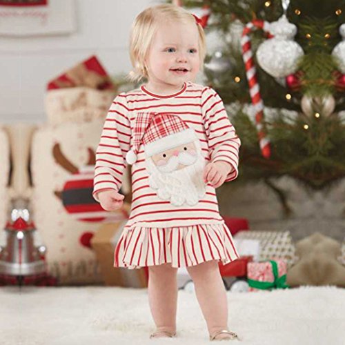 MIOIM ベビー服 女の子 ワンピース クリスマス キッズドレス ストライプ 長袖 秋 冬 可愛い 通園 発表会 記念日 プレゼント 12ヶ月-4歳