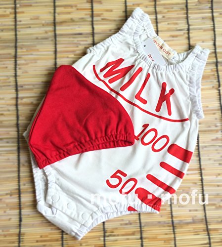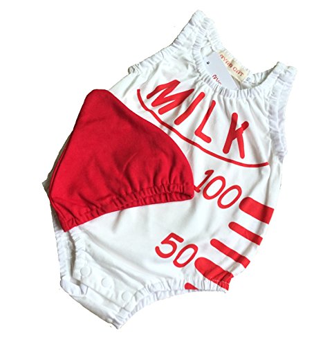 ミルク 哺乳瓶 デザイン ベビー服 ロンパース 帽子 付 (80)