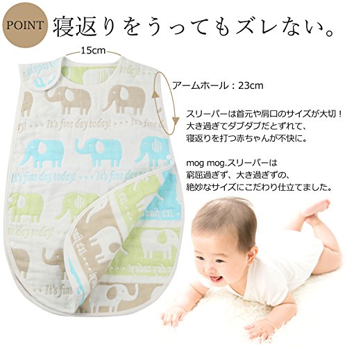 mogmog. スリーパー 赤ちゃん 8重 ガーゼ 100%コットン 6重よりふわふわ 春夏秋冬 (新生児~3歳頃向け) (ぞう)