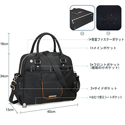 - おむつ替えシート付:おむつ替えシート(70x33cm)が1つ付き、マザーズバッグの下に専門なシート用なポケットがあり、内側にはおむつ用のポケットあり、野外でも楽に子供のむつを替えることができます。