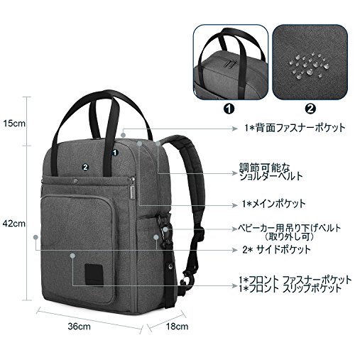 - 【大容量】720gの重量で軽量なマザーズバッグです。15.6インチノートPCも収納できます。手帳、食品袋、哺乳瓶、傘、ipad、新生児ママの必須用品を一式収納可能なバッグです。