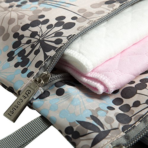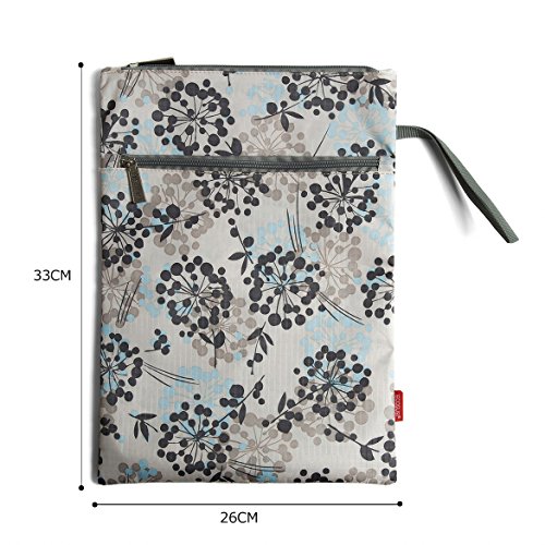 - Large zippered pocket for wet items or dirty nappies, medium zipper font pocket for dry, clean items. Can also use as a laundry bag.