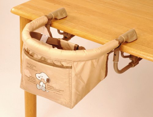 スヌーピーがデザインされた、取り付け簡単なテーブルチェア。お子様のおやつの時やお絵かきの時など用途は色々。デニム調なので男女問わず使用できる。3点支持でガッチリホールド。20~60mmの厚さのテーブルに取付けが可能。
