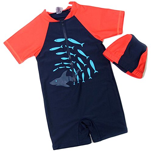 - 同じカラーの帽子付。海の中のイラストが入った可愛らしいデザインで、海やプールデビューにぴったりです。