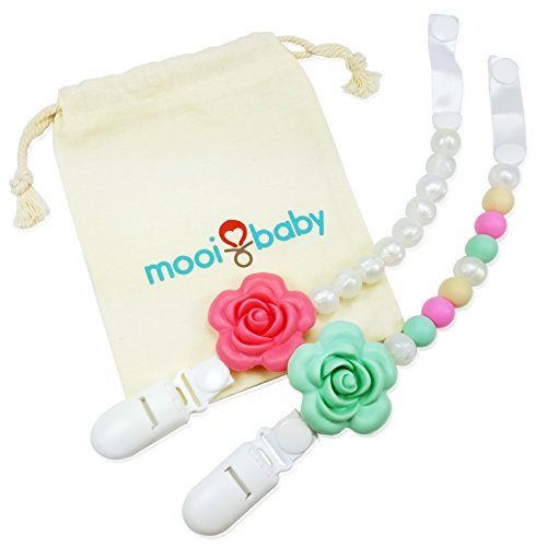 TRENDY AND FUNCTIONAL - Our mooi baby 2 pack silicone pacifier clips combine function with fashion to provide high-quality clips to make your life easier, and cleaner!;STRONG, WASHABLE AND DURABLE - Our clips are made of 100% silicone beads, are washable and durable, and have strong plastic clips so as not to rust or hurt baby's teeth or gums;MULTI-FUNCTIONAL - Great for pacifier, soothies, bibs, baby blankets, stuffed animals, sippy cups, or anything else you need holding onto.;SAFE AND EASY TO USE - mooi baby pacifier clips are non-toxic, lead free, latex free, and BPA free. Do NOT leave you baby or child unattended with pacifer clip, buyer assumes full responsibility;SATISFACTION GUARANTEED - mooi baby strives to provide the highest quality products at competitive prices. Add our mooi baby pacifier clips to your cart and enjoy these cute clips today!
