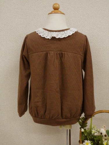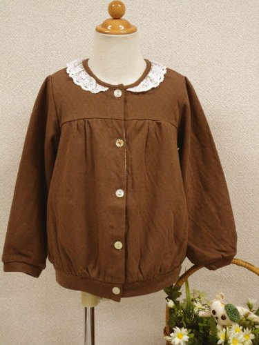 やわらかい肌ざわりの無地のカーディガン。胸の切り替えと白いレ スのお襟がキュートおしゃれさんには、カーディガンは必須アイテムですね。<品質> 綿100%