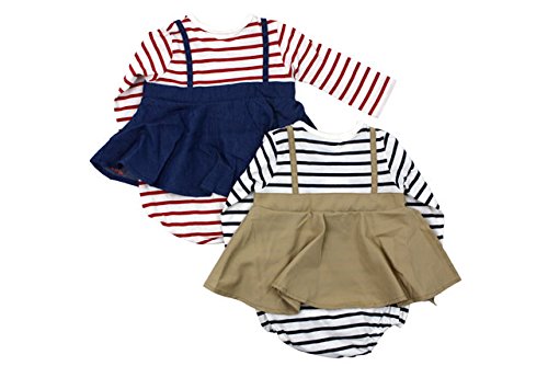 ボーダーのロンパースにキャミソールワンピースを重ね着しているみたいですが、くっついている重ね着風のTオールです。大人でも流行している重ね着、デザインなので、リンクコーデやお揃いコーディネートも出来そうなシンプルでも可愛いTオールです!