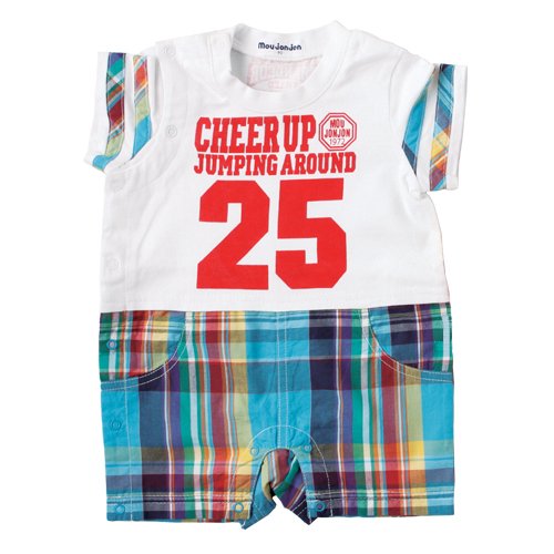ナンバーロゴが大きくプリントされたTシャツと、チェックのパンツを組みまわせたようなTオール。着せるだけでおしゃれベビーになれちゃうアイテム。