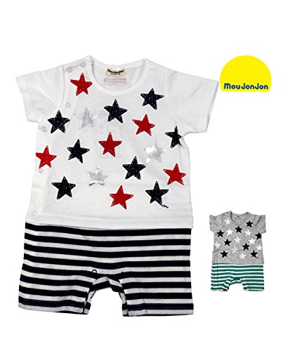 【子供服】 moujonjon (ムージョンジョン) 星柄プリントボーダー切替Tオール 70cm,80cm M34720