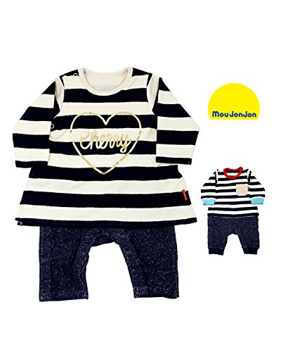 【子供服】 moujonjon (ムージョンジョン) ボーダー配色セパレート風オール 70cm,80cm M54740