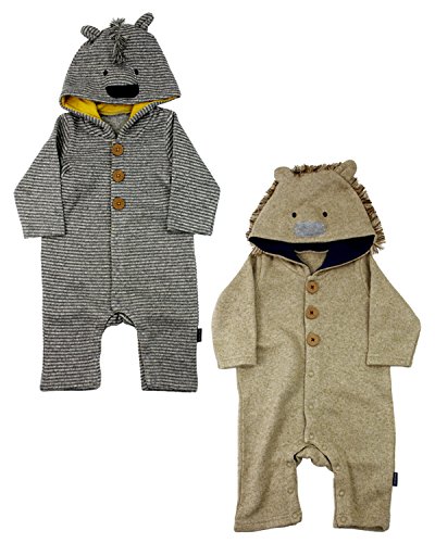 ニットのようなカットソー素材のニットソー素材。暖かニットソーのカバーオールです。グレーはしまうま、ベージュがライオンのなりきりのカバーオールです。ギフトにもオススメ!