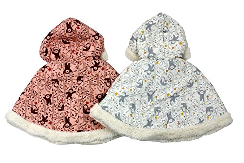 表はポリピーチ素材、裏はふわふわもこもこボア素材です。くまやうさぎやぞうさんが着ぐるみを着ているキャラクターっぽくて可愛い総柄です!耳付きがベビーらしいです。サイズがSサイズのワンサイズのみの展開で80cm前後の対応となりますが、マント、ポンチョ、ケープのタイプなので、サイズ感があまりないので、長く着れます。ギフトやプレゼントにもぴったりです!