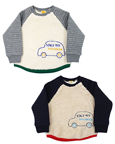 【子供服】 moujonjon (ムージョンジョン) 車刺繍入りボア切替トレーナー 70cm~130cm M54643