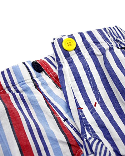 薄手の布帛のブロード素材。夏でも涼しく履けます!夏らしい爽やかストライプ柄のハーフパンツです。同じストライプ柄でワンピースの作り(M44310)もあるので、男女、兄弟姉妹でアイテム違いのお揃いコーディネートも出来ます!