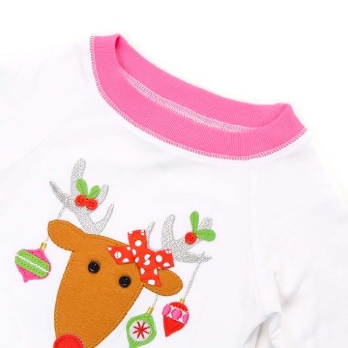 Mud Pie マッドパイ大人気アメリカ子供服ブランド!優しいカラーや愛らしいデザインなど、出産祝いにもおすすめです。トナカイの角をクリスマスツリーに見立てオーナメントがかわいらしく飾られたデザインの女の子におススメのパジャマです。コットン素材で心地よい肌触りです。クリスマスのパーティーを楽しく過ごすコスチュームとしてもお使い頂けます。プチギフトにもおすすめです。