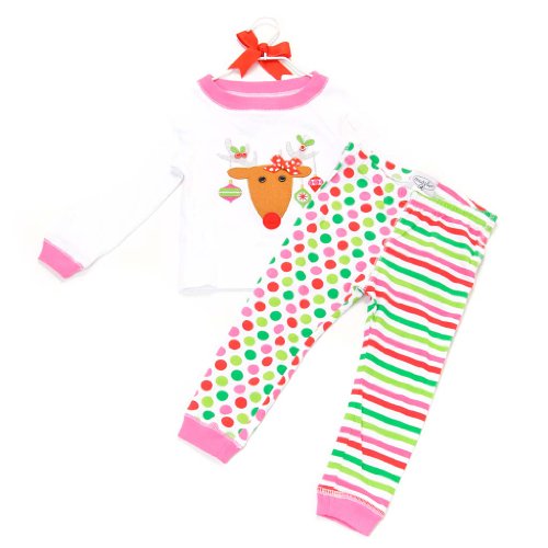 (マッドパイ)Mud Pie ベビー Reindeer Lounge Set pajamas(パジャマ)/クリスマス 111A052-12 ピンク×マルチカラー 9-12M(9ヶ月~12ヶ月) [並行輸入品]