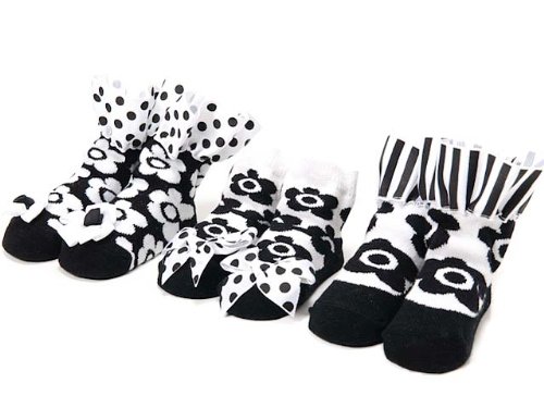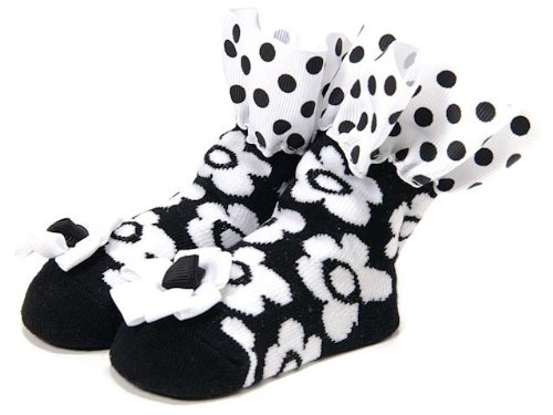 Mud Pie マッドパイ大人気アメリカ子供服ブランド!優しいカラーや愛らしいデザインなど、出産祝いにもおすすめです。モノトーンの花柄にドット、リボン、ストライプの3種類の靴下。フォーマルなシーンにもお使い頂けます。まだ歩けない赤ちゃんは、靴を履かずに靴下で過ごすことがほとんどなので、くつ下にはこだわりたいですね。プチギフトにもおすすめです。
