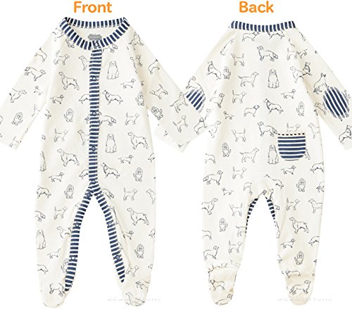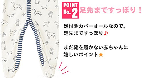 - ワンちゃんの絵柄が可愛い足つきベビーカバーオール