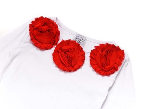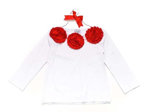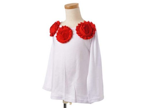 (マッドパイ)Mud Pie ベビー/キッズ シフォンロゼット ロングTシャツ カットソー 131253L Red Chiffon Rosette Ling Sleeve Top ホワイト×レッド LARGE 2-4T [並行輸入品]