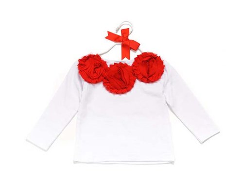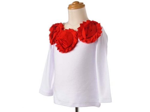 (マッドパイ)Mud Pie ベビー/キッズ シフォンロゼット ロングTシャツ カットソー 131253S Red Chiffon Rosette Ling Sleeve Top ホワイト×レッド SMALL 0-12M [並行輸入品]