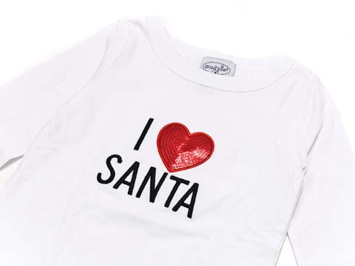 Mud Pie マッドパイ大人気アメリカ子供服ブランド!優しいカラーや愛らしいデザインなど、出産祝いにもおすすめです。クリスマスにピッタリのトップス&レギンスのセットアップ。胸の部分の大きな[アイラブサンタ]のロゴとスパッツの総柄の[アイラブサンタ]がセットアップでとてもかわいいです。胸のハート部分がスパンコールになっているのも、ちょっとした遊びが感じられ、プリントにはない、光沢がクリスマス気分を上げてくれます。クリスマスのパーティーを楽しく過ごすコスチュームとしてもお使い頂けます。プチギフトにもおすすめです。