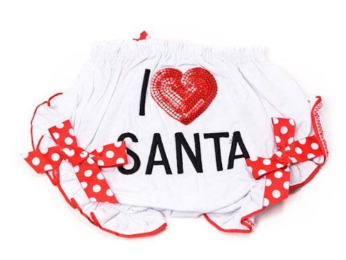 (マッドパイ)Mud Pie ベビー ブルマー(おむつカバー) 131042 I LOVE SANTA BLOOMER/アイラブサンタ/クリスマス ホワイト×レッド 0-6m(0~6ヶ月) [並行輸入品]