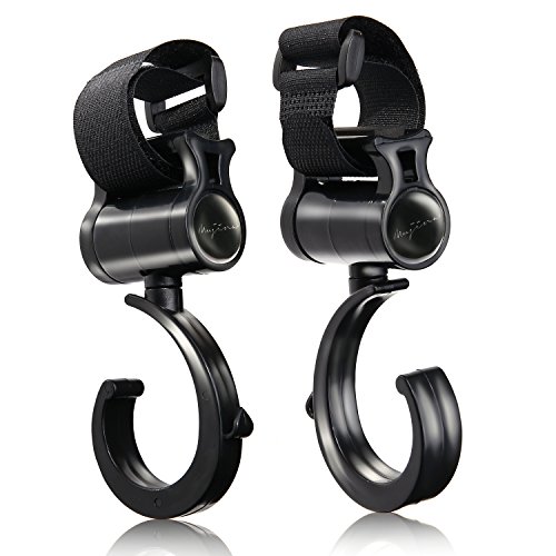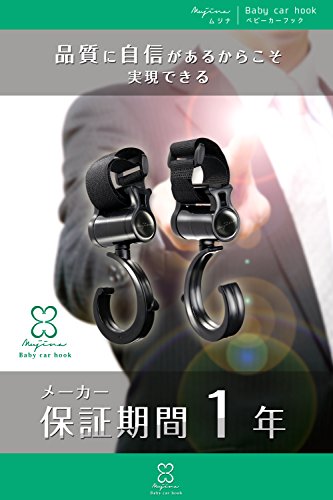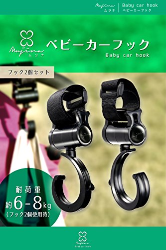 (ムジナ) mujina ベビーカーフック 自転車のハンドルやスーツケースにも使える マルチフック 耐荷重6~8kg 360度可動 2個セット マジックテープ式 (ブラック)