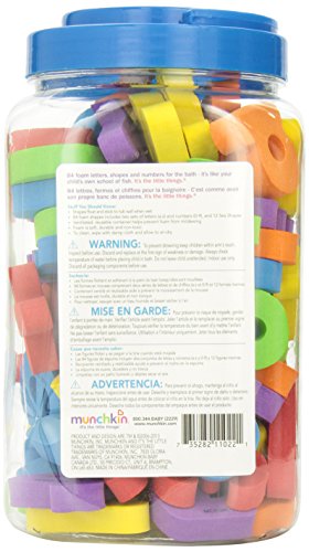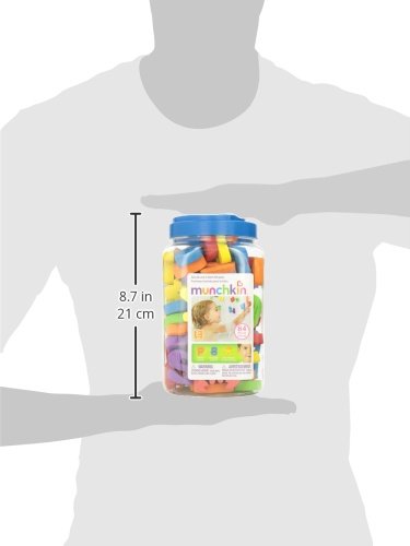 マンチキンのかわいいお風呂のおもちゃ、バススポンジです。海の生き物や、数字、アルファベットのキュートなスポンジが合計84個入っています。絵柄もアメリカンでとってもキュート!濡らすとお風呂の壁やタイルにくっつくので、入浴しながら楽しく遊べます。色や模様、数字や動物の名前など、お勉強にもなります。プラスチックジャー入り。パッケージサイズは約幅12.5×高さ22×奥行12.5cmひとつあたりの大きさは5~7くらいです。